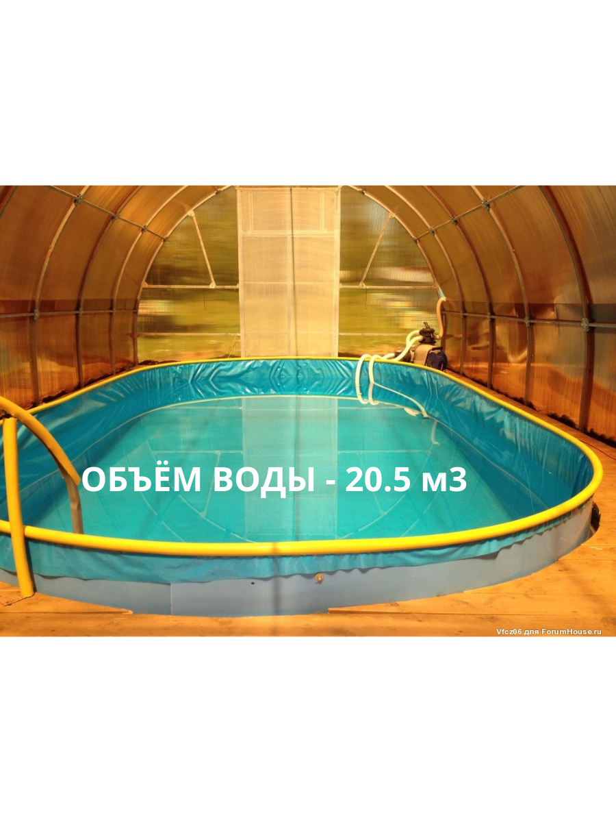 Объём бассейна — около 12,8 м³ воды.