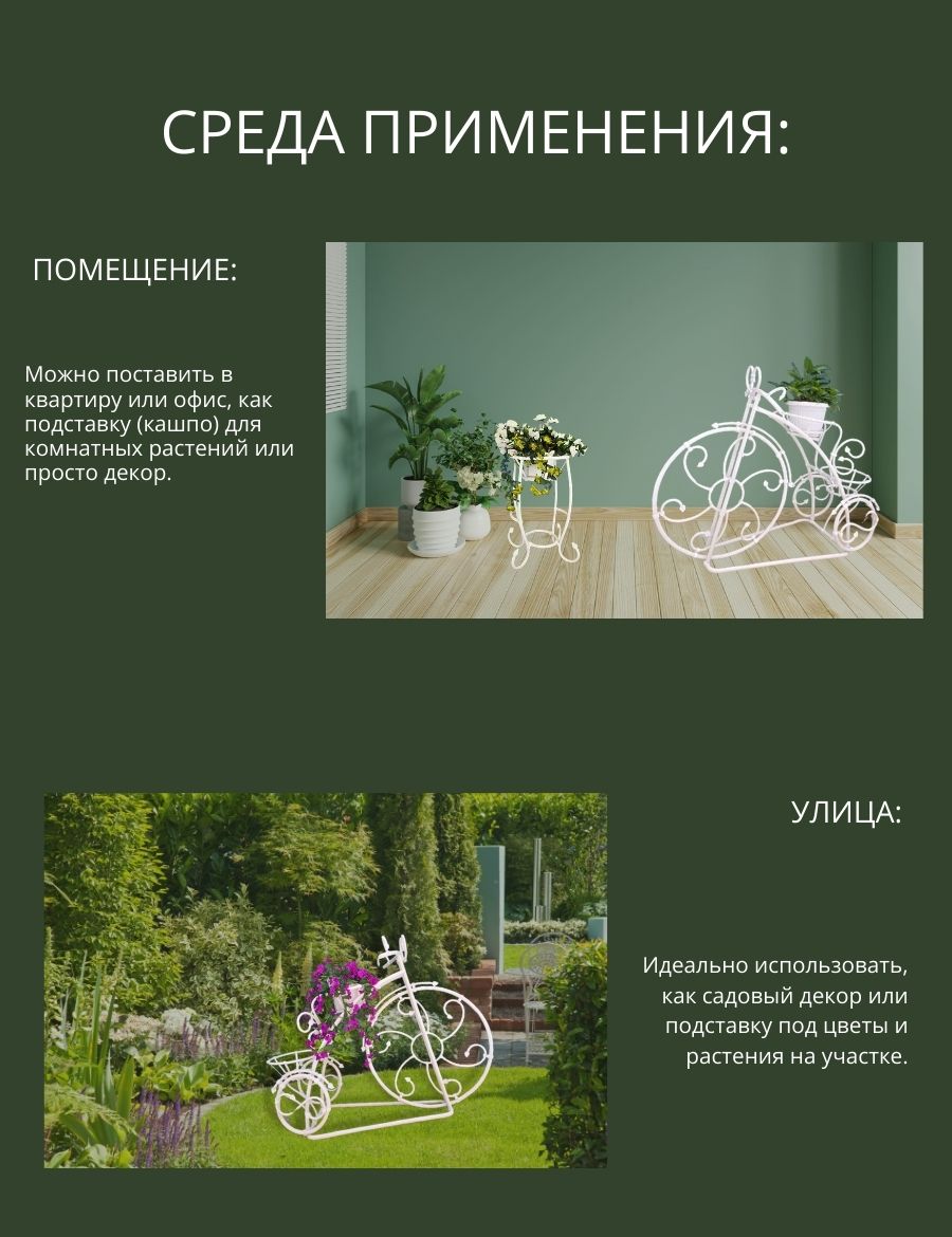 Не упустите шанс преобразить ваше пространство с помощью этой стильной подставки! Создавайте уникальные цветочные композиции и наслаждайтесь гармонией природы в вашем доме и саду. Подставка под цветы – это не просто аксессуар, это возможность подчеркнуть индивидуальность вашего стиля.