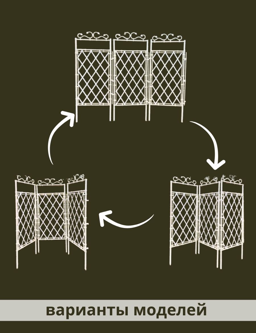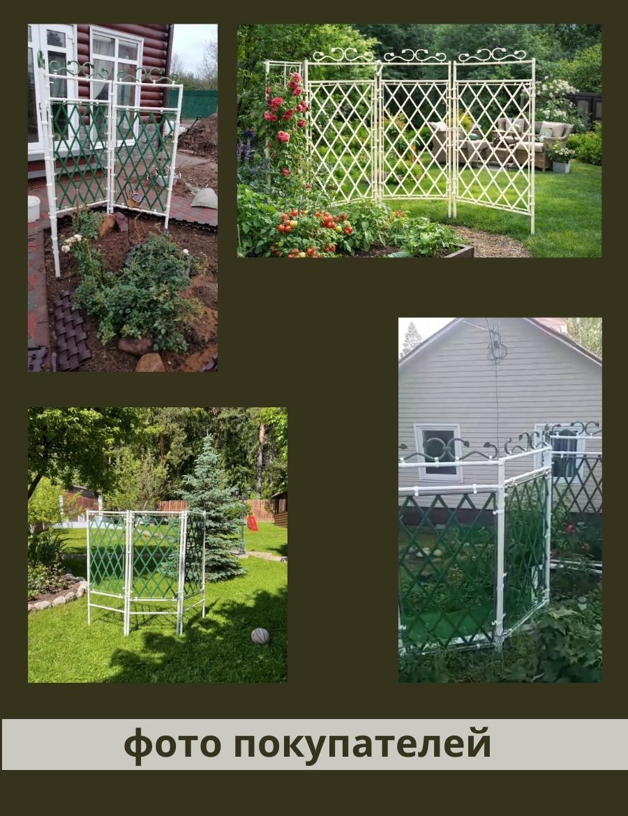 Шпалеры - конструктор 3D (опоры) для вьющихся растений от отечественной компании ГарденПласт, мгновенно преобразят ваш сад, участок и огород. В комплекте 3 одинаковые секции (1 секция = 180х70 см), которые можно устанавливать, как отдельно, так и вместе, соединенные между собой в различные формы (гармошка, ширма, треугольник). Каркас шпалер выполнен из труб ПВХ диам 32мм. Наши изделия выполнены из белого и зелёного пластика ПВХ, который остаётся неизменным многие годы и не требует никакого специального ухода (не выцветает, не ржавеет, не трескается, морозоустойчив, крепкий, лёгкий). Растения на таком пластике в жару не подгорают. Вся сборка на защелках, никаких саморезов, болтов и гаек. Для надёжности вбейте в землю арматуру или трубку и “наденьте” на них шпалеры. Идеальны под покраску.
